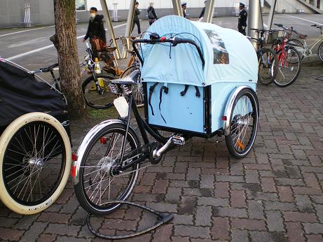 最後は番外編で、デンマーク製のクリスティーナという三輪自転車(トライク)です。会場の外の歩道に展示してあったので本当に番外なのですが、駅に向かう人達の横でしばらくの間じ~っと見入ってしまいました。ちょっと恥ずかしかったので、次はぜひ中に展示して下さいね。(笑)