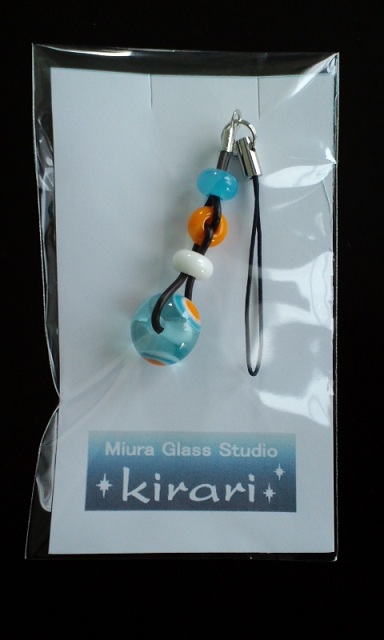 ガラス製のキーホルダーです。良く見ると、ロゴマーク(ただし色のみ)が入っているんですよ。携帯やスマホに付けても良いし、鈴を付けてFLOAT-BOARDに付ければ歩行者への注意喚起にもなりますね。