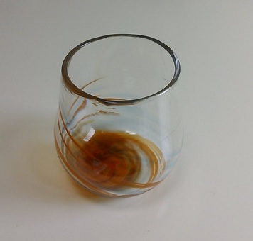 一応FIRST-PENGUINのイメージカラーであるオレンジとブルーを選んだのですが、オレンジとブルーは混ざると茶色っぽくなってしまうそうです。しかもブルーほとんど判らないし、形はデコボコだし(泣)。。吹きガラスはかなり難しいですね。